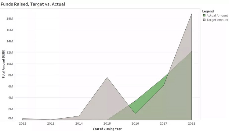 Total Funds Raised vs. Targeted (with two campaigns pending)